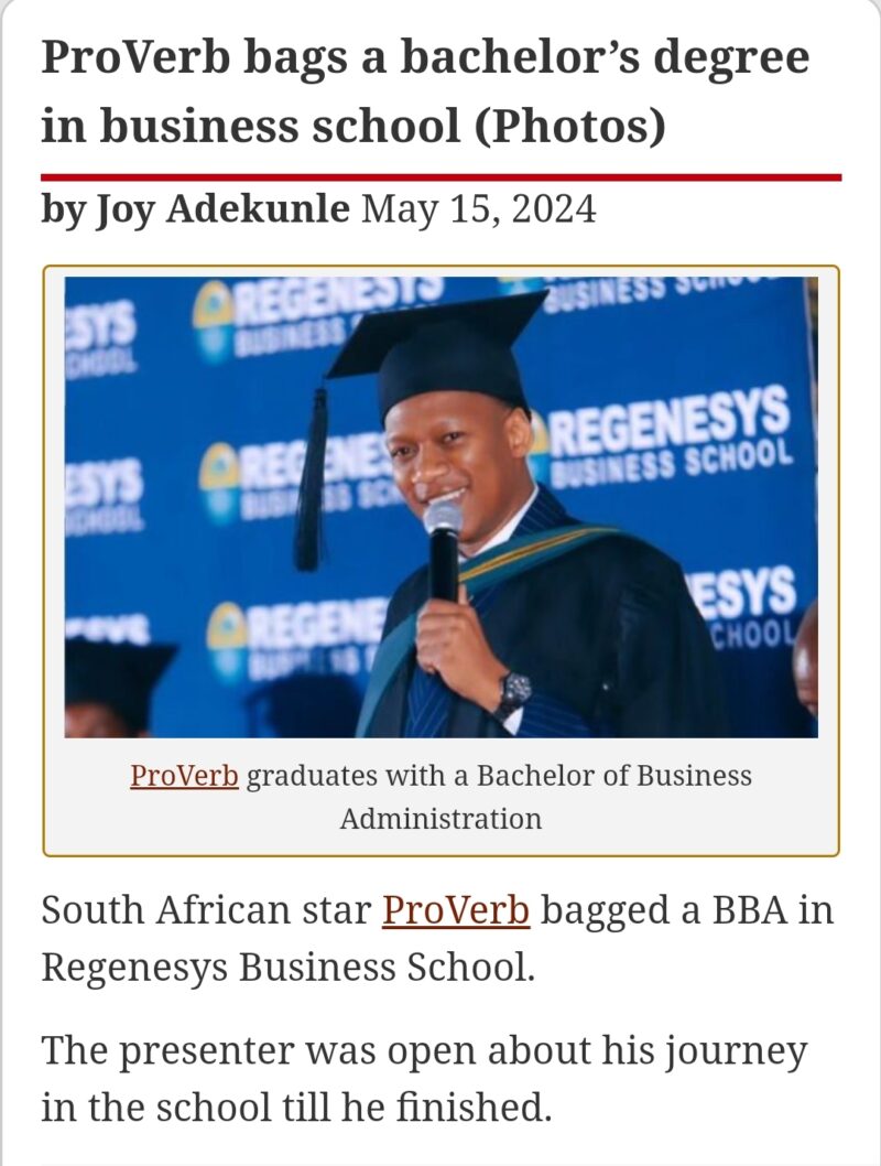 ●2024 Masters of Business Administration – Regenesys Business School (Current)